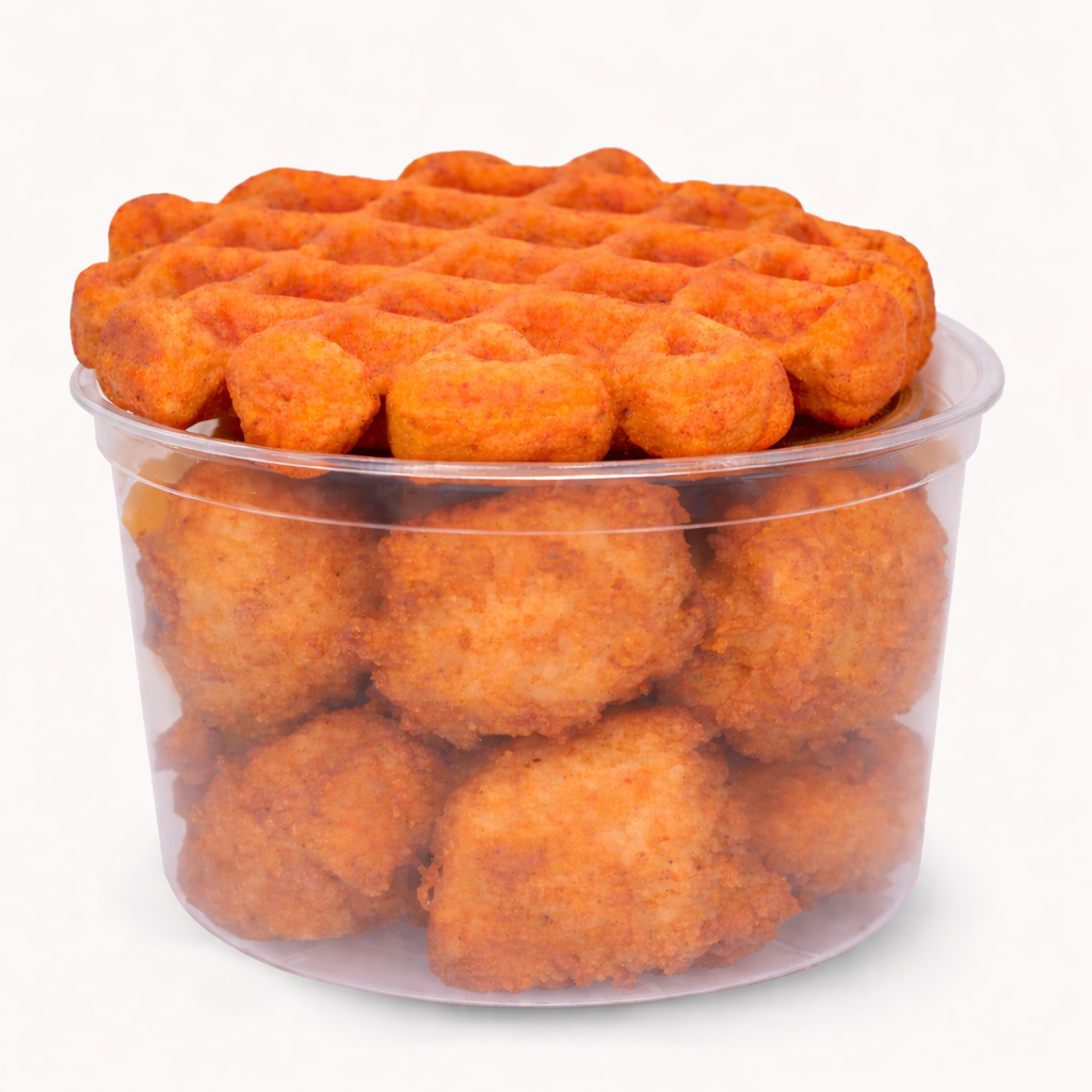 This brand new sweet potato protein waffle will have you dancing with our famous Paleo "Chick-Fil-A" nuggets with rice flour, egg, coconut milk, dill pickle juice, olive oil, paprika, honey, salt and pepper. Two servings per container, nutrition information per serving: 250 calories, 12g protein, 33g carbs, 10g fat